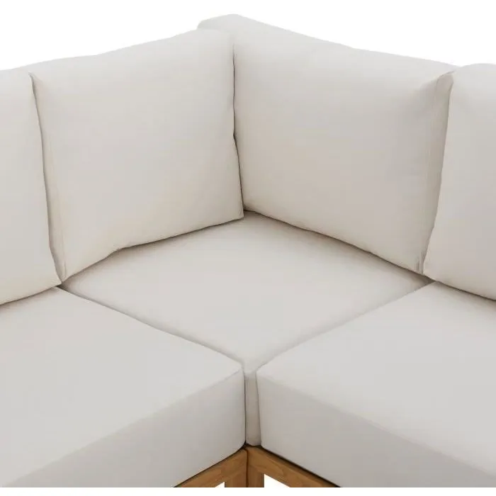 La table basse avec plateau en lattes d’aluminium complète harmonieusement l’ensemble et permet de poser boissons, livres ou accessoires lors de vos moments conviviaux. Avec ses lignes épurées et son confort généreux, ce salon d’angle transforme votre terrasse ou votre jardin en un véritable espace de détente.