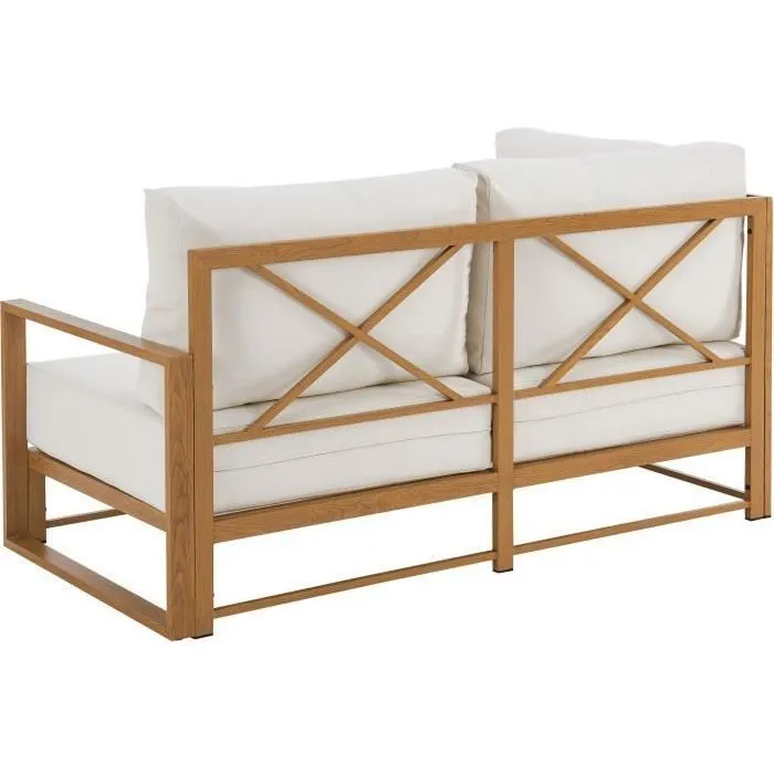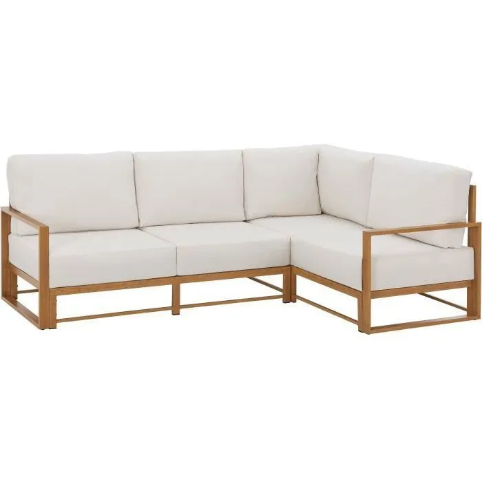 - Couleur : structure effet bois avec coussins gris clair / écru